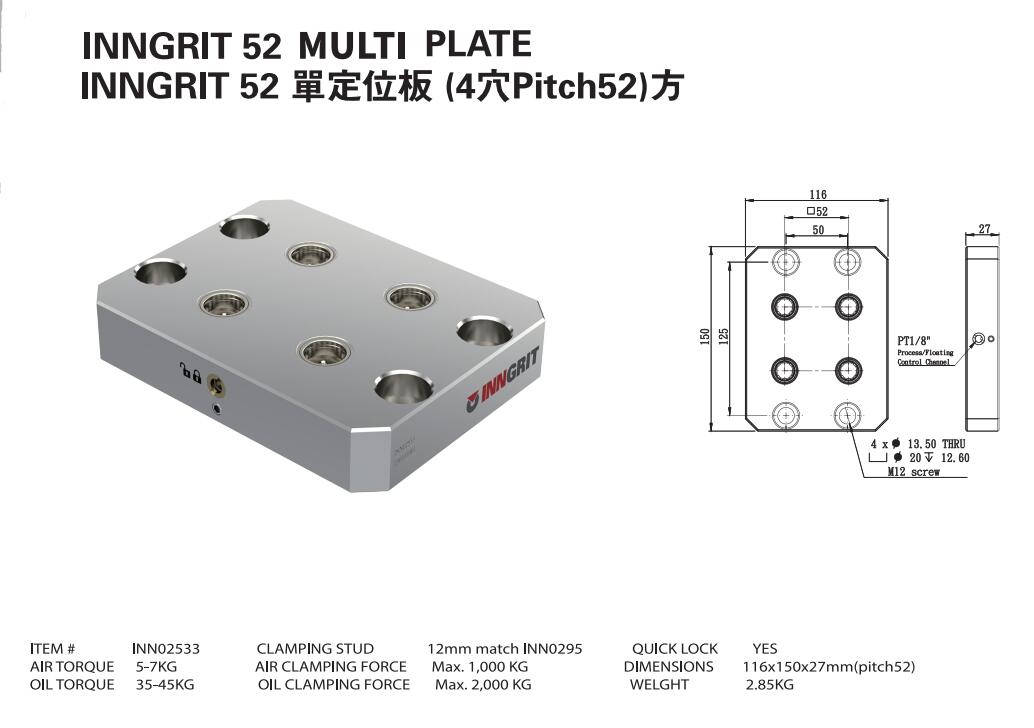 INN02533 單定位板 (4穴Pitch52)方
