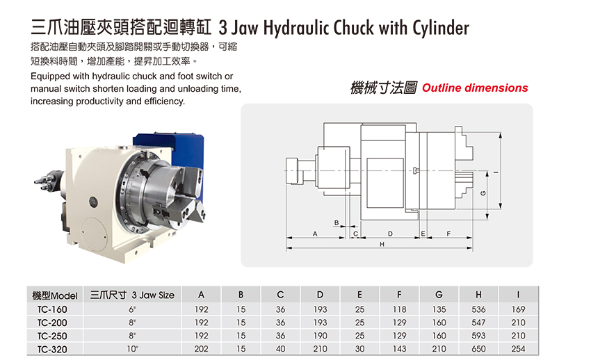 三爪油壓夾頭搭配回轉缸